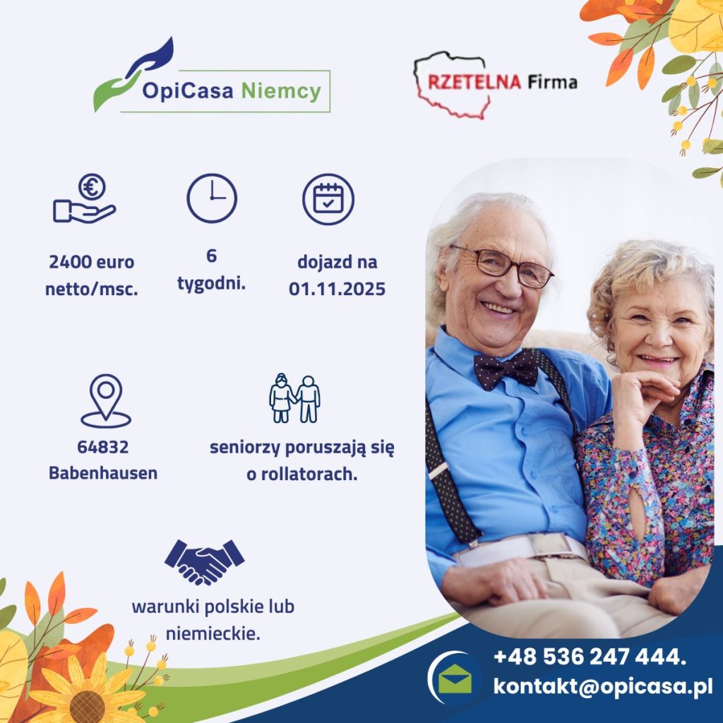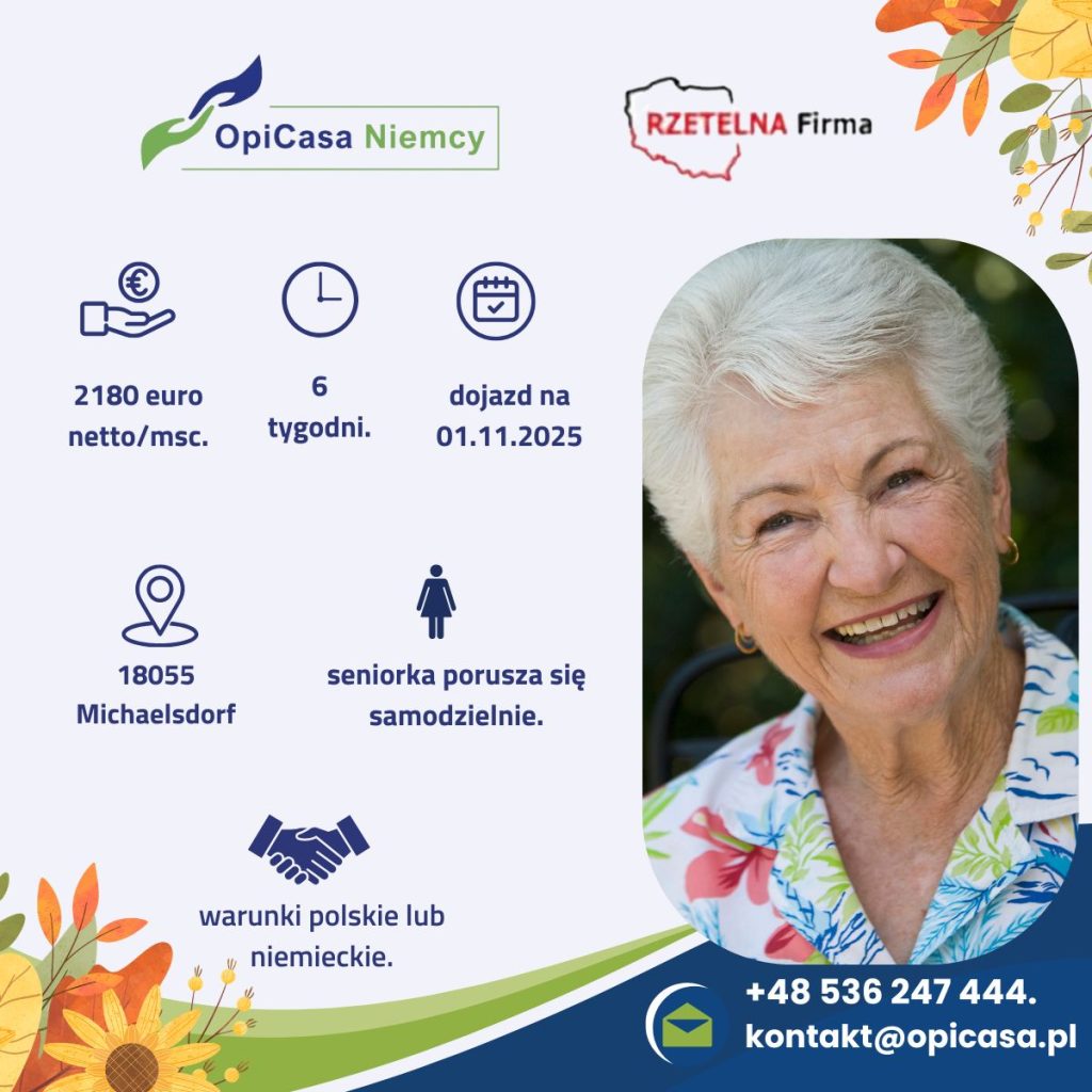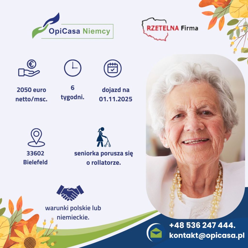Podopieczna ma 87 lat i choruje na osłabienie starcze oraz osteoporozę, porusza się samodzielnie o rollatorze.