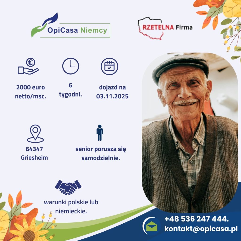 Podopieczny ma 92 lata i choruje na demencję, porusza się samodzielnie.