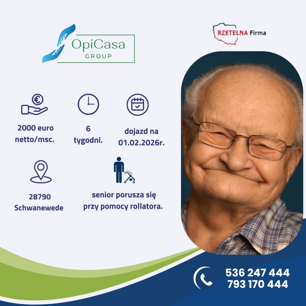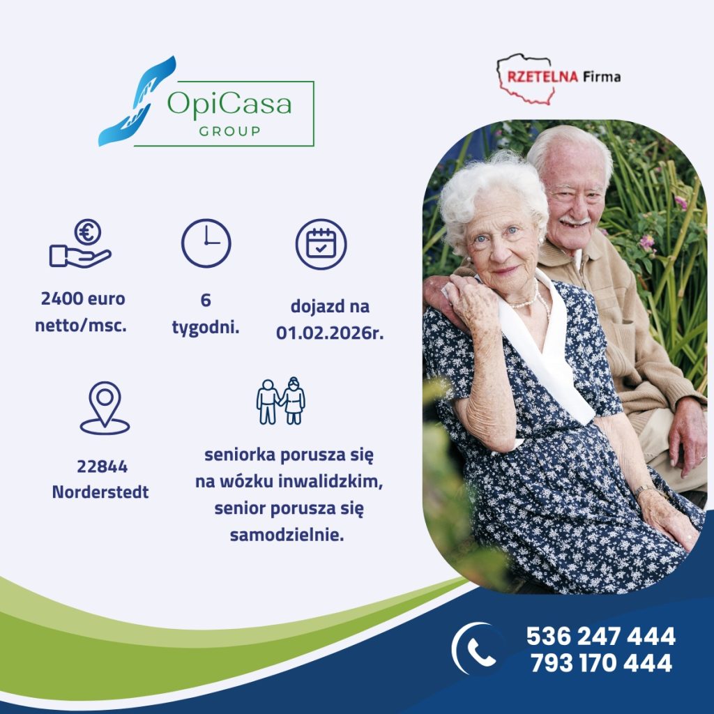 Wymagamy bardzo dobrej znajomości języka niemieckiego, prawa jazdy i doświadczenia w opiece nad osobami starszymi.